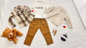 Ce look tendance combine élégance et praticité pour accompagner les enfants dans toutes leurs activités.